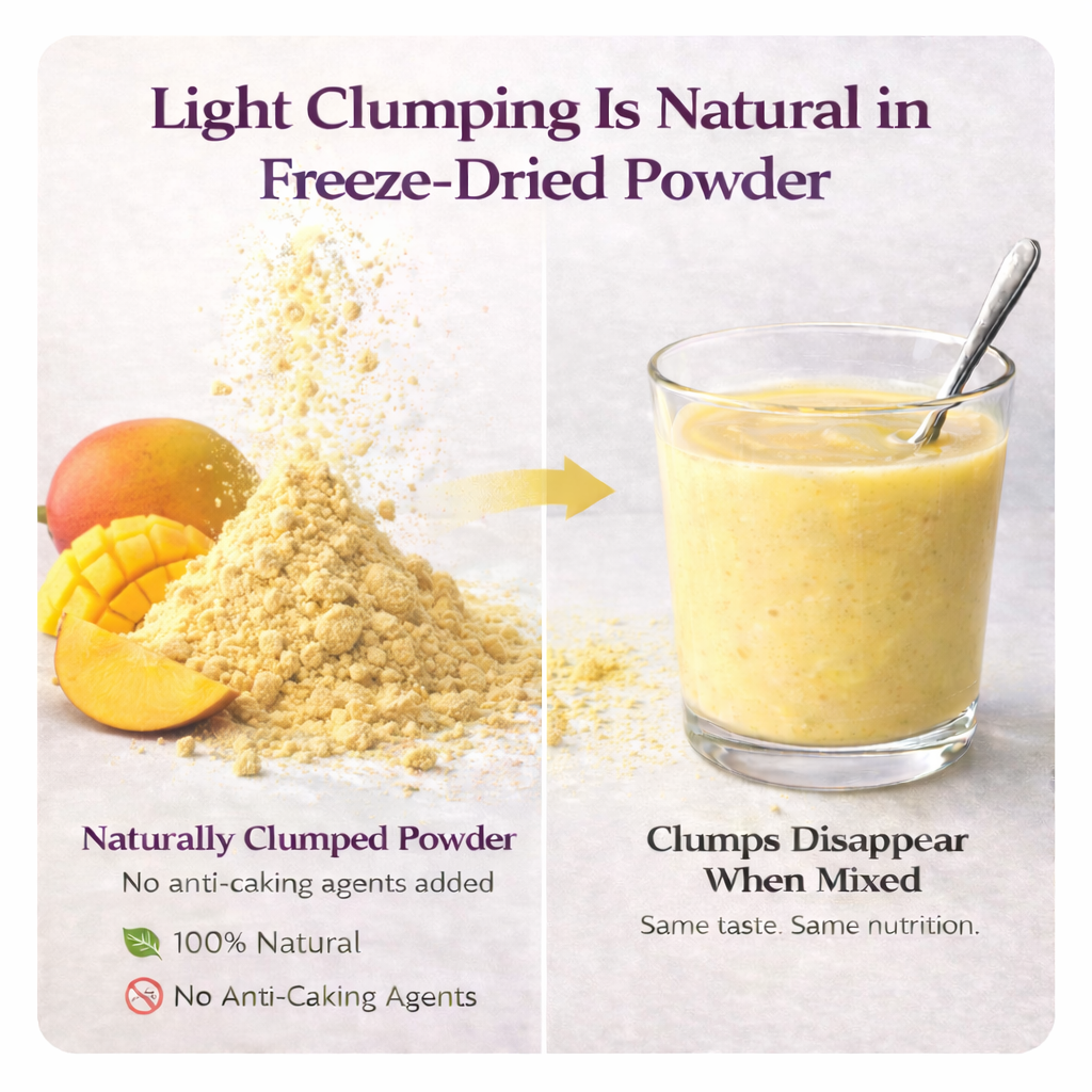 Bột xoài sấy thăng hoa được làm từ những trái xoài chín tự nhiên, được tuyển chọn kỹ lưỡng và chế biến bằng công nghệ sấy thăng hoa tiên tiến. Quy trình này giúp giữ nguyên hương vị ngọt ngào nhiệt đới, màu sắc tự nhiên và các dưỡng chất như vitamin A, vitamin C, beta-carotene và khoáng chất. Bột có kết cấu mịn, dễ hòa tan, phù hợp cho ngành thực phẩm, đồ uống, dinh dưỡng và mỹ phẩm tự nhiên.