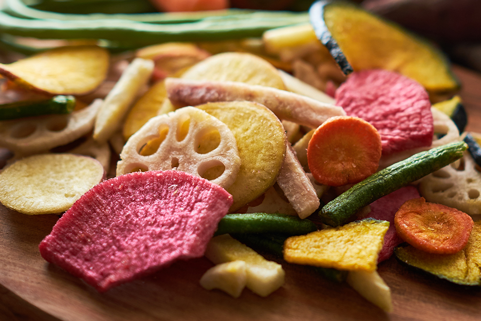 Rau củ sấy ngoài là món ăn vặt, còn được sử dụng trong các gói gia vị nấu như mì, phở,… Một số rau củ thường sấy như: cà rốt, khoai tây, khoai lang, khoai môn,…
