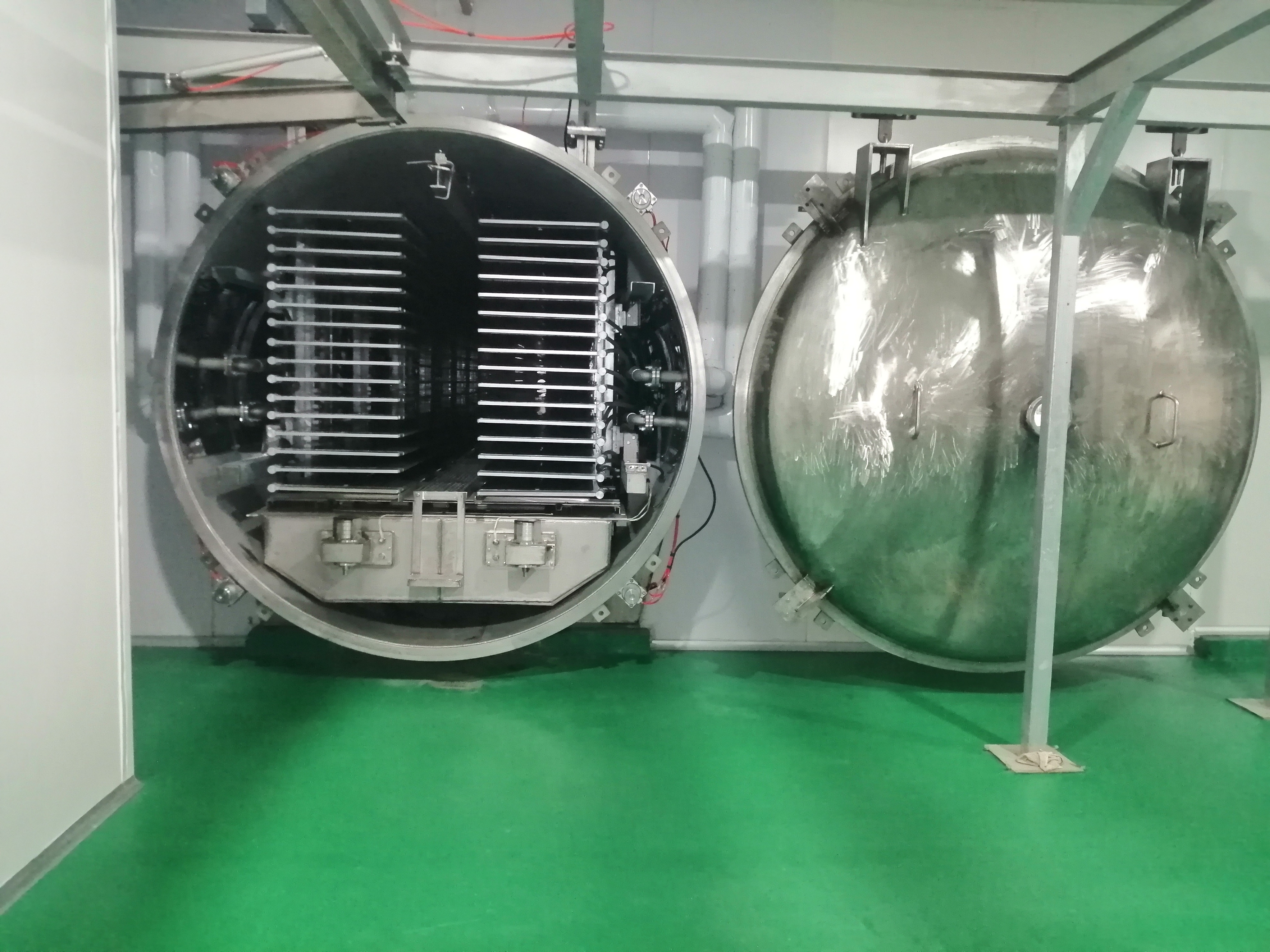 => Quy trình được thực hiện ở môi trường sấy nhiệt độ và áp suất thấp. Sản phẩm sau khi kết đông được đưa vào môi trường chân không để hơi nước chuyển từ trạng thái thể rắn sang thể hơi, cấu trúc sản phẩm được giữ vững , đảm bảo thành phẩn về dinh dưỡng và màu sắc sản phẩm, nâng cao chất lượng và giá trị sản phẩm.