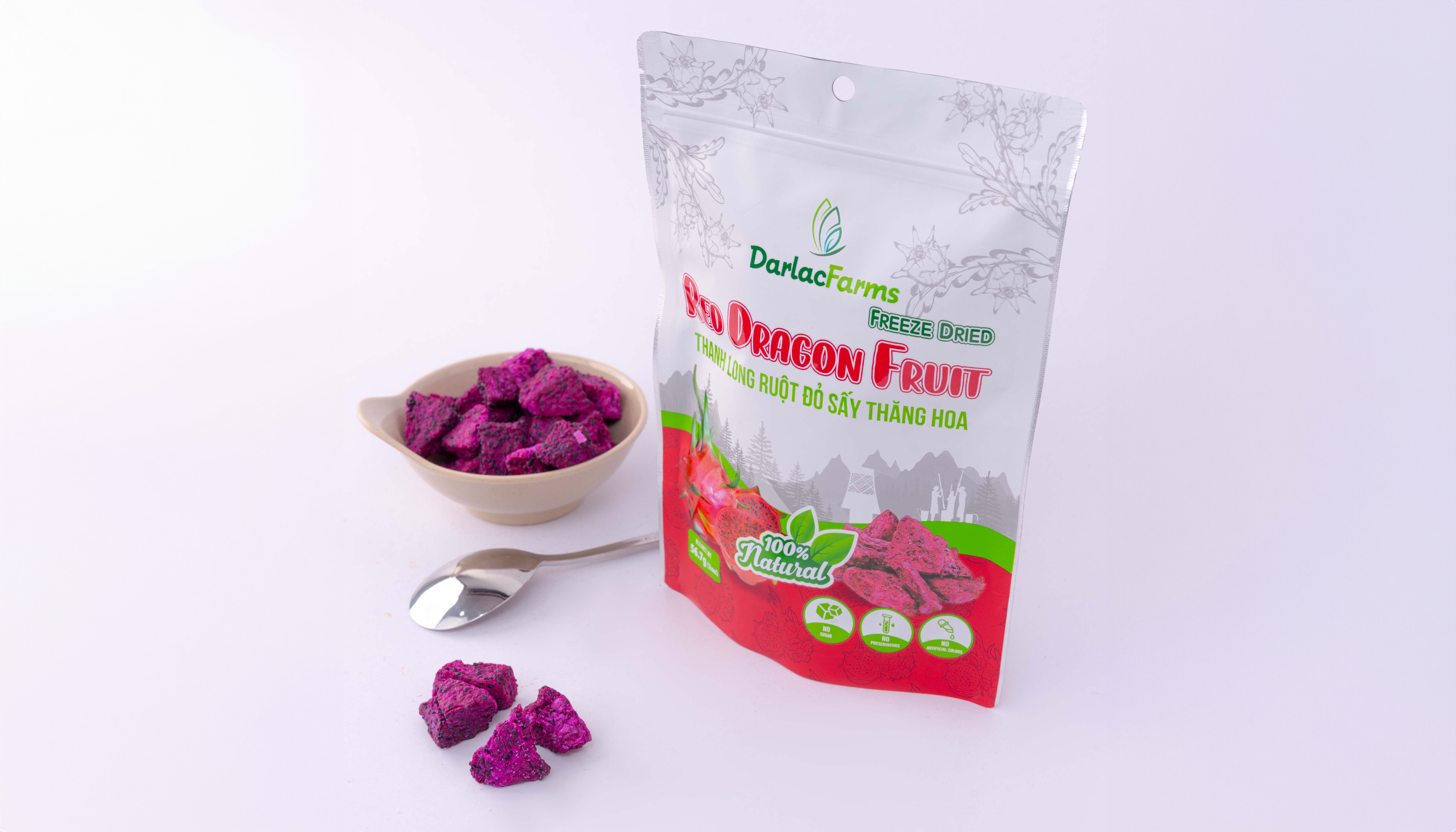 Chúng tôi áp dụng công nghệ Sấy thăng hoa cho quá trình bảo quản và chế biến. Nhờ vậy, cấu trúc sản phẩm được giữ vững, đảm bảo thành phẩn dinh dưỡng và màu sắc, nâng cao chất lượng và giá trị sản phẩm.